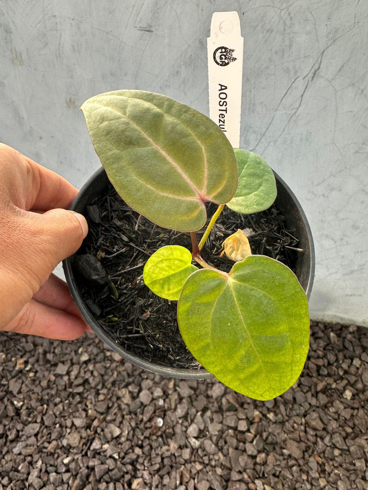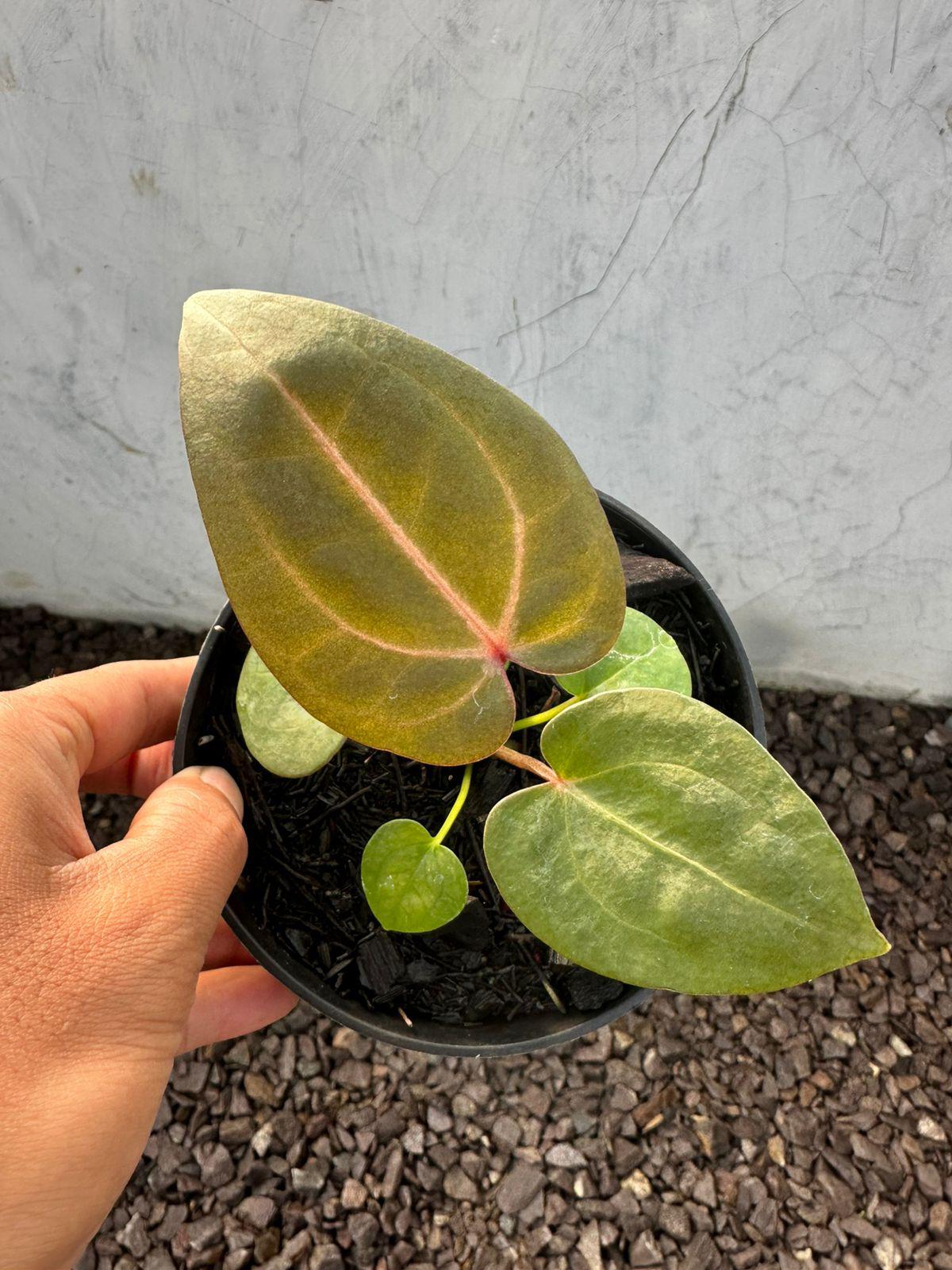 Anthurium ‘Ace of Spades Tezula’ × ‘Michelle’ is an exquisite interspecific hybrid celebrated for its bold, heart-shaped foliage and lush growth habit. Young leaves unfurl a deep emerald green, gradually revealing subtle silvery marbling that intensifies with maturity. Its compact, clumping form makes it an excellent choice for tabletops or plant stands, while forgiving care requirements—bright, indirect light and evenly moist, well-draining soil—suit both novice and experienced collectors. This hybrid’s striking foliage and reliable performance add a sophisticated tropical touch to any indoor setting.