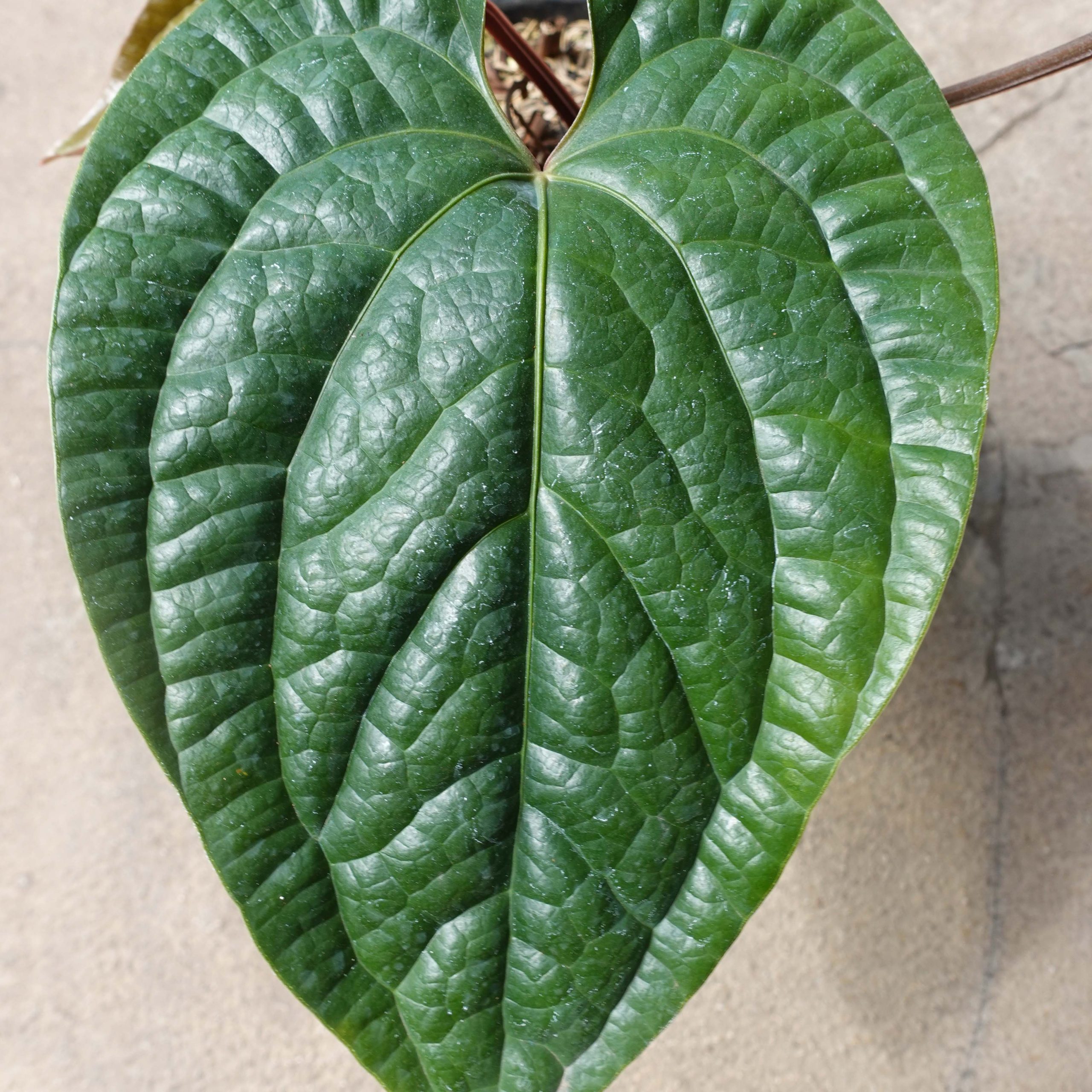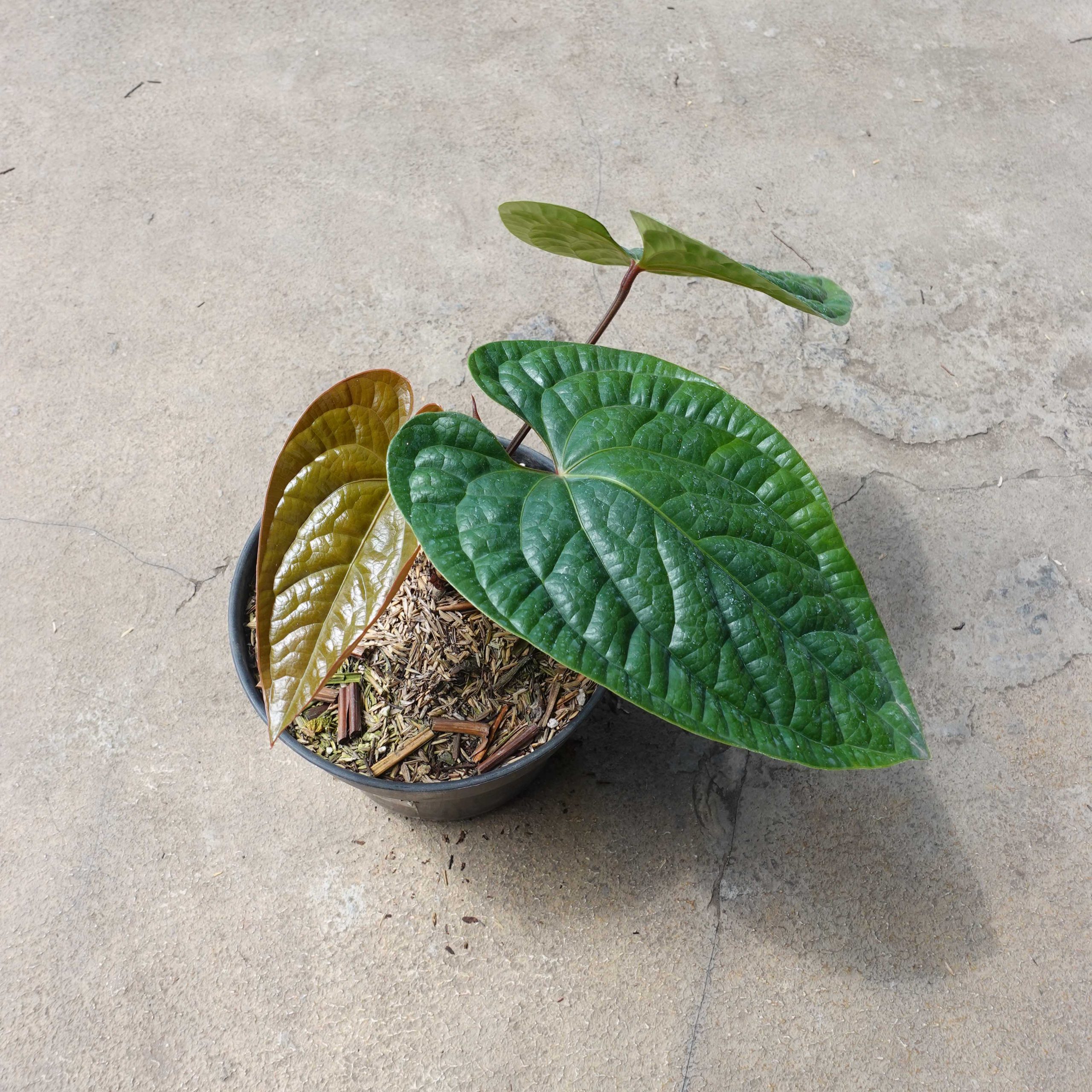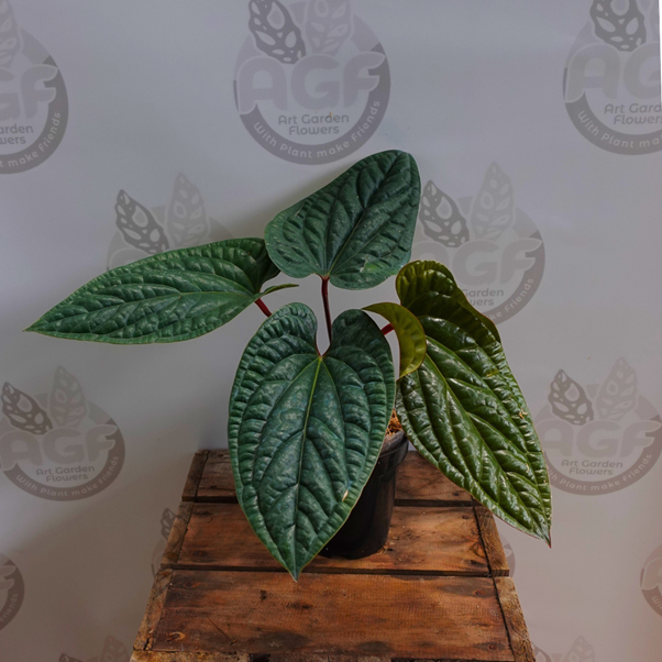 This plant is also known as the Betel Anthurium because its shape resembles betel leaves. However, the shape of the leaves is larger and more assertive than ordinary betel plants. This plant has a stem with a red color. The leaf buds also look reddish in color. But these leaf buds will slowly turn green.