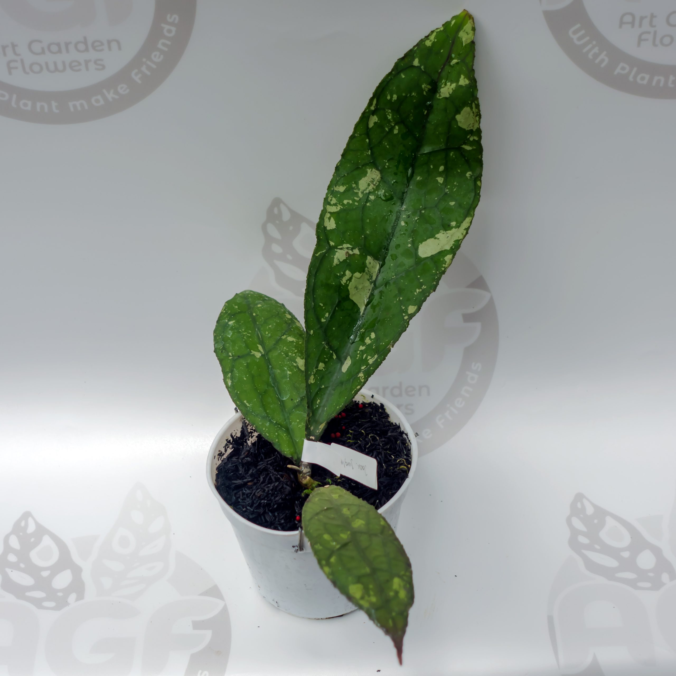 Hoya Clemensorium Army Super Splash boasts bold, glossy leaves with stunning silver splashes that create a striking contrast against its deep green background. Easy to care for and thriving in bright, indirect light, this rare Hoya is perfect for collectors seeking a unique and eye-catching plant.