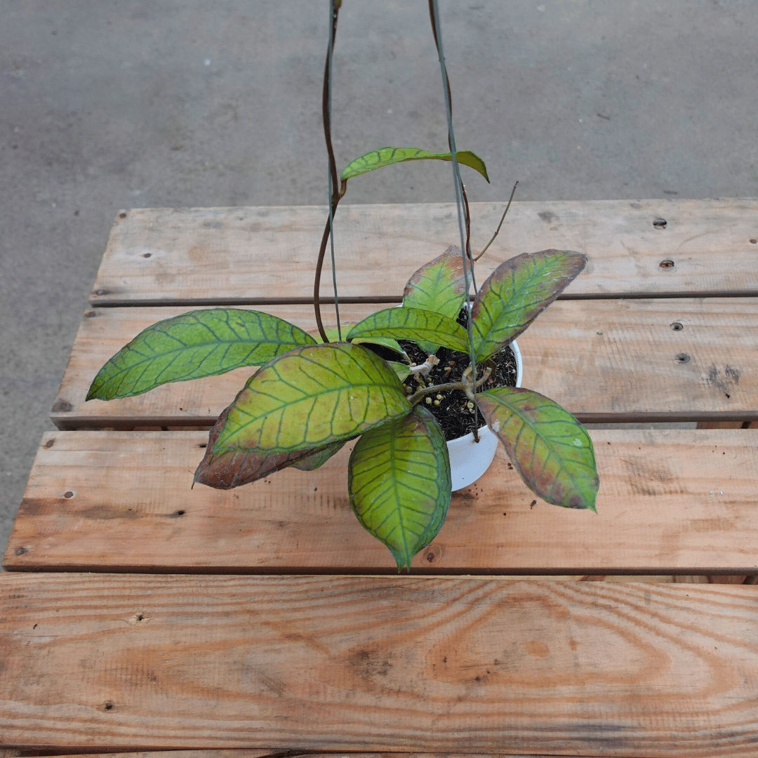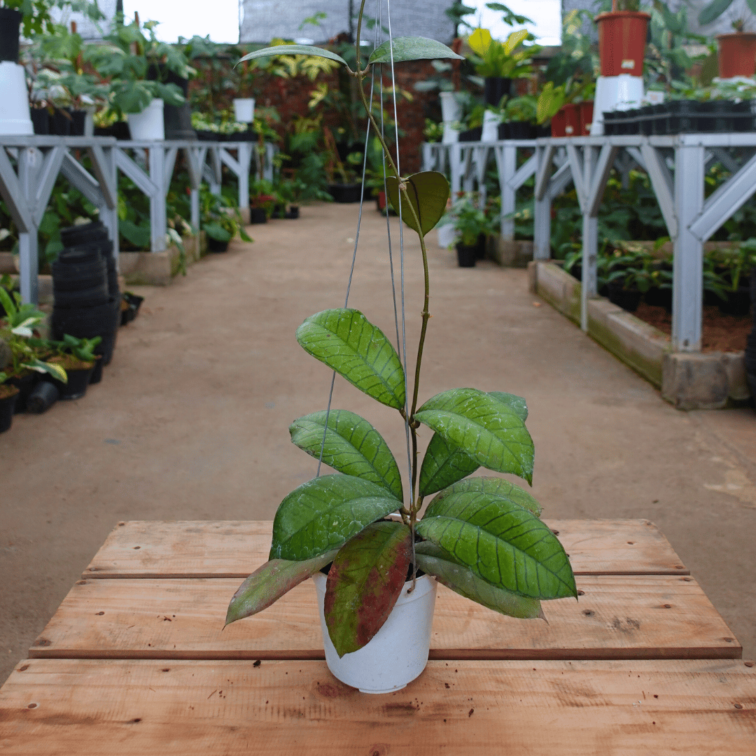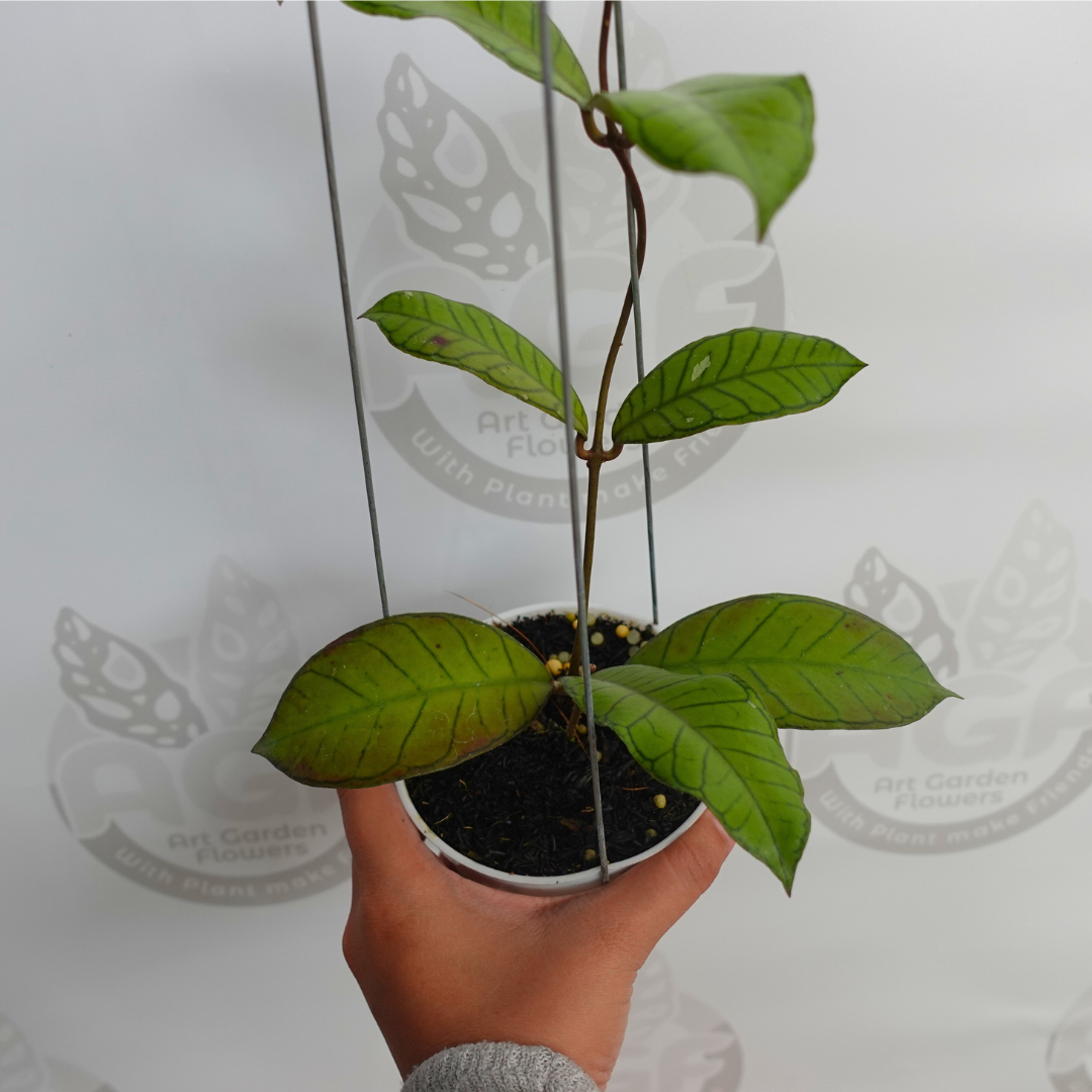 The Hoya Gunung Gading plant has oval leaves with striking dark green veins. When exposed to sunlight, the leaves undergo a color change to a charming purplish-red. Despite its slow growth, this plant requires special care regarding temperature and humidity. It is recommended not to water it too often, while keeping the plant warm and moist. Placement of the plant in direct sunlight should be avoided.