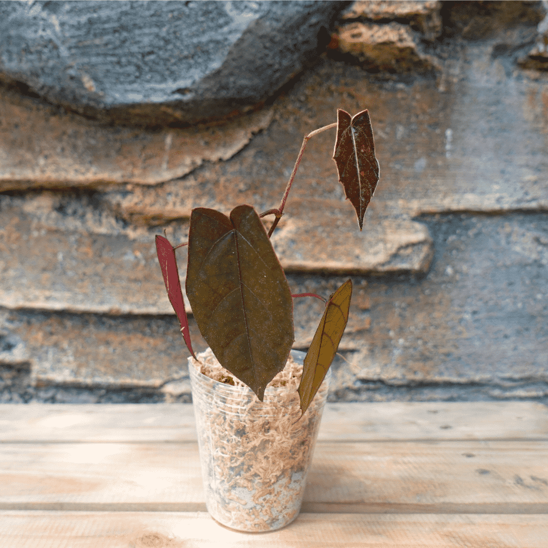 The leaves are almost black in color with beautiful veins. The leaves have a unique shape like the Batman logo. It grows well in shady environments and areas with sufficient light. It is a rare endemic plant.