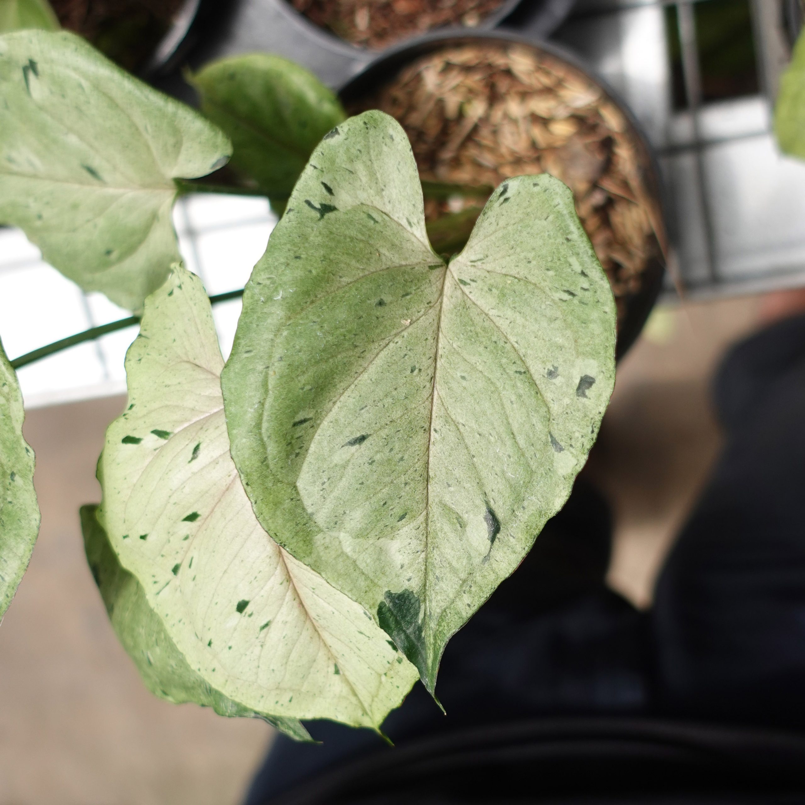 Syngonium Greensplash is a striking variety with green leaves splashed with lighter green and white. This plant adds a playful and dynamic look to your collection.
