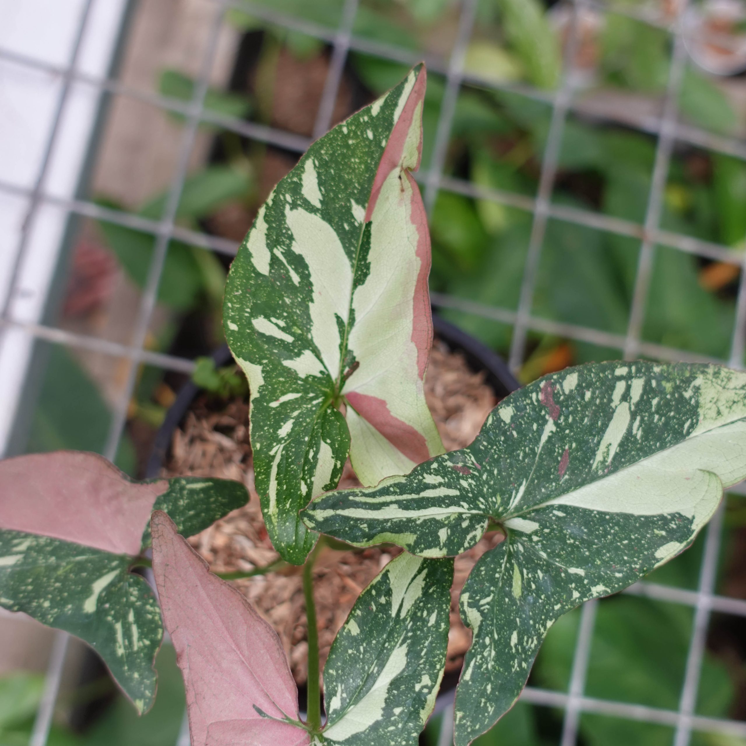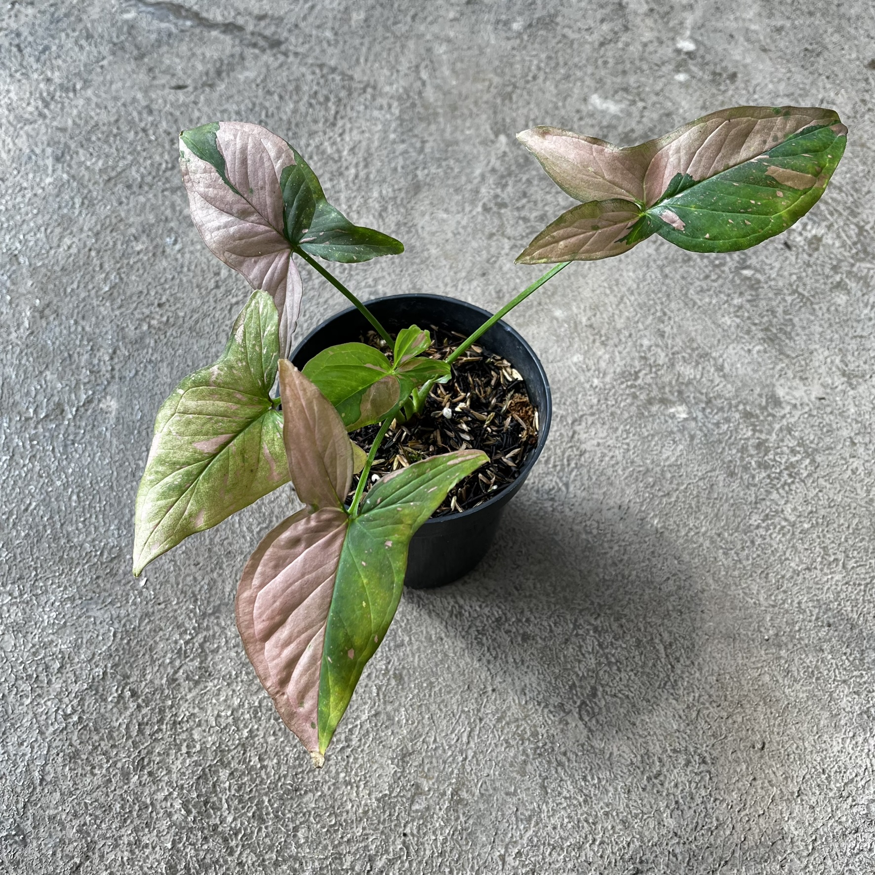 Syngonium Tricolor features beautiful variegation in shades of green, white, and pink. It’s a plant that adds a vibrant and colorful touch to your indoor garden.
